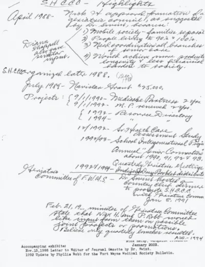 Council on Senior Services was originally founded in December 1988 under the name Senior Health Care Coordinating Council. It began with a simple idea: bring together local leaders and professionals to improve access to quality care and support for senior citizens in Allen County.